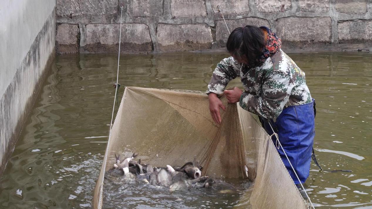随着兜网的合拢,鱼苗捕捞也告一段落。在老杨卖鱼的间隙,志愿者们向前来购买苗的养殖户们又讲解起春季养鱼放鱼技术要点和鱼类养殖相关法律法规。