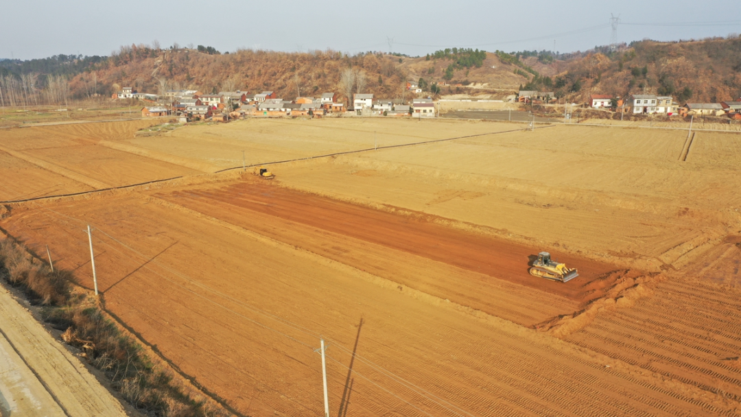 暖阳映照,机器轰鸣,随州市随县均川镇光河村高标准农田项目建设现场热闹非凡。多台挖掘机、推土机同时作业,固化田埂、平整土地150亩,清淤堰塘280亩,安装沟渠3000米,灌溉直达田间地头。经过改造后,零散“巴掌地”巧变“整片田”,有效解决了耕地面积分散、机械化程度不高、灌溉难等问题,提高了土地利用率,降低了劳动生产成本,促进农田增效,农业增收。